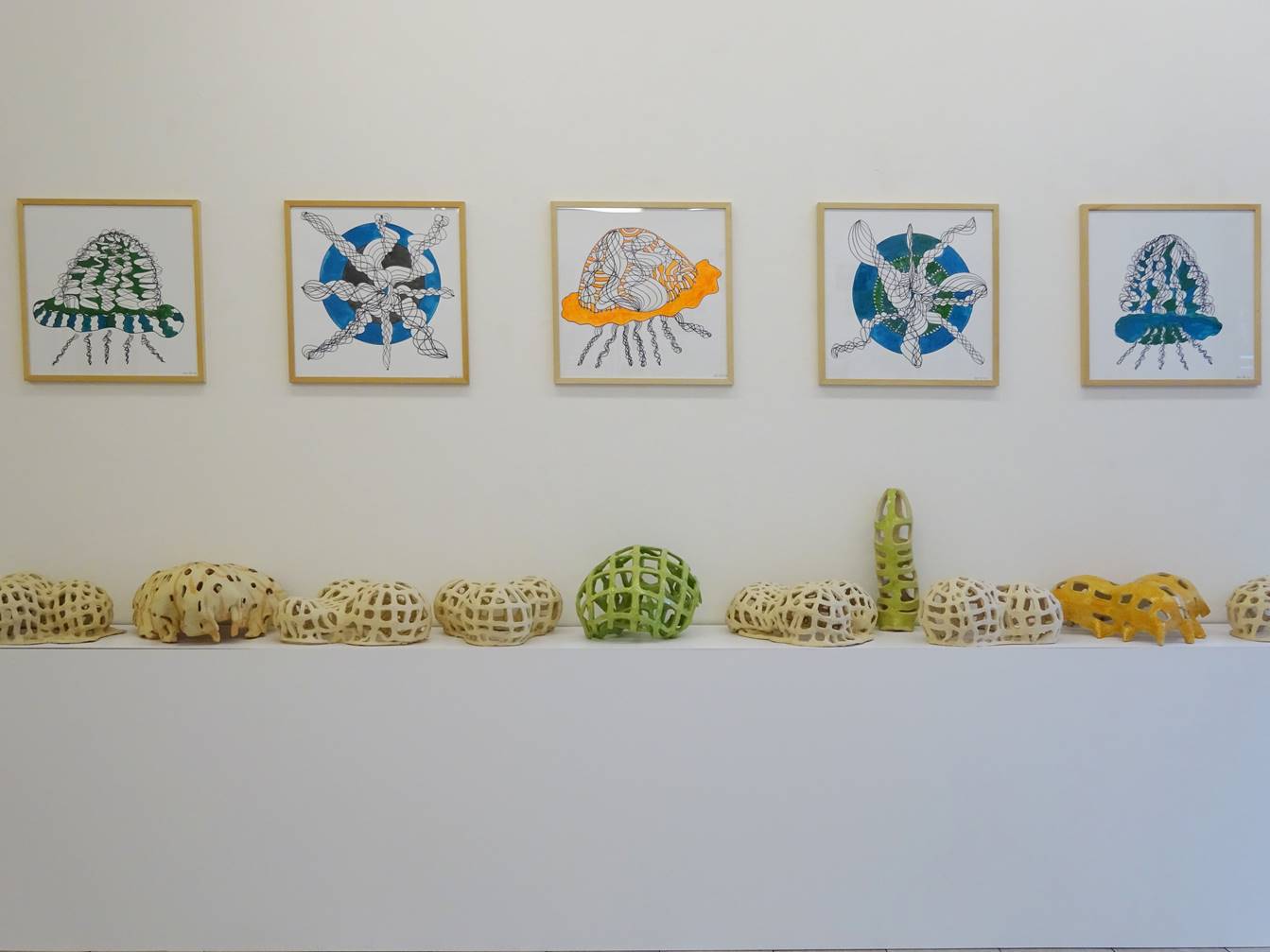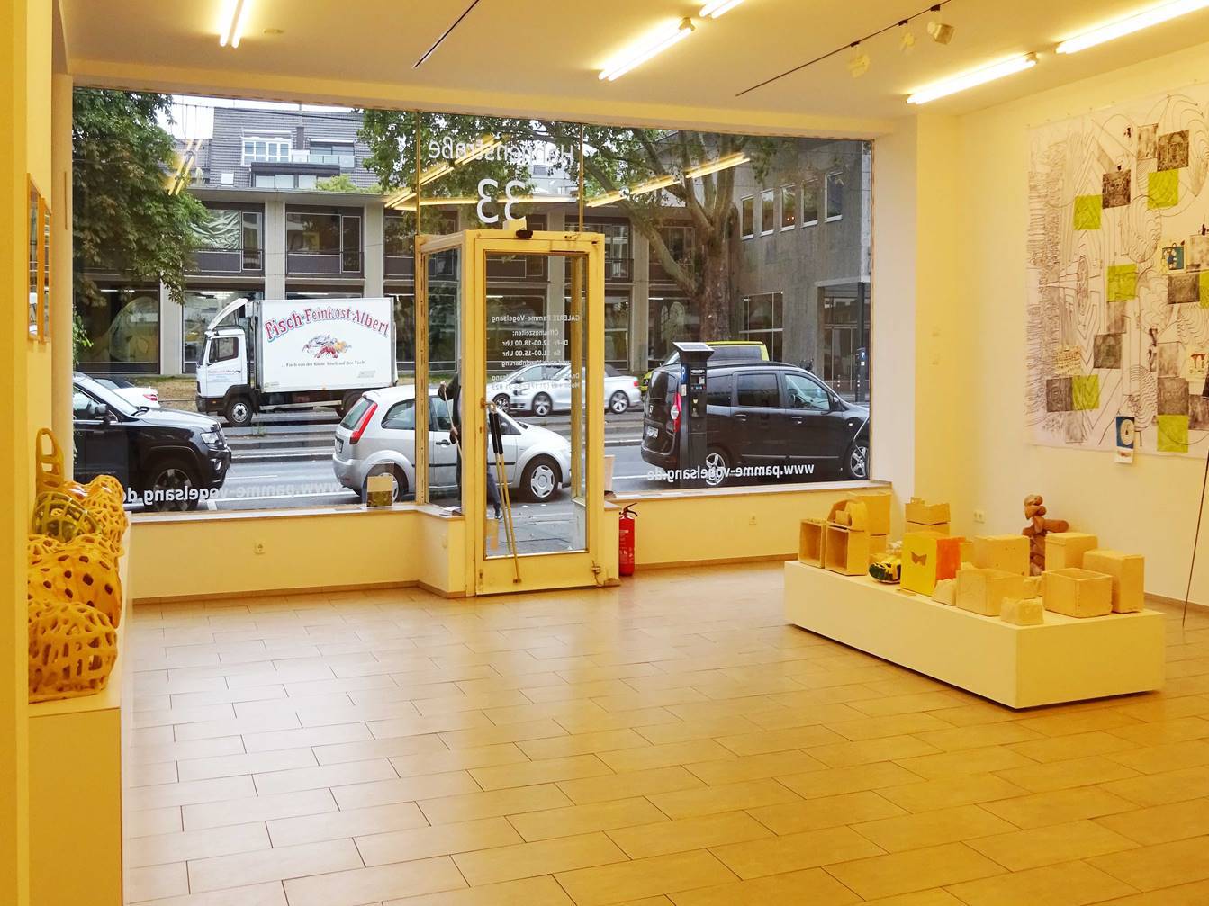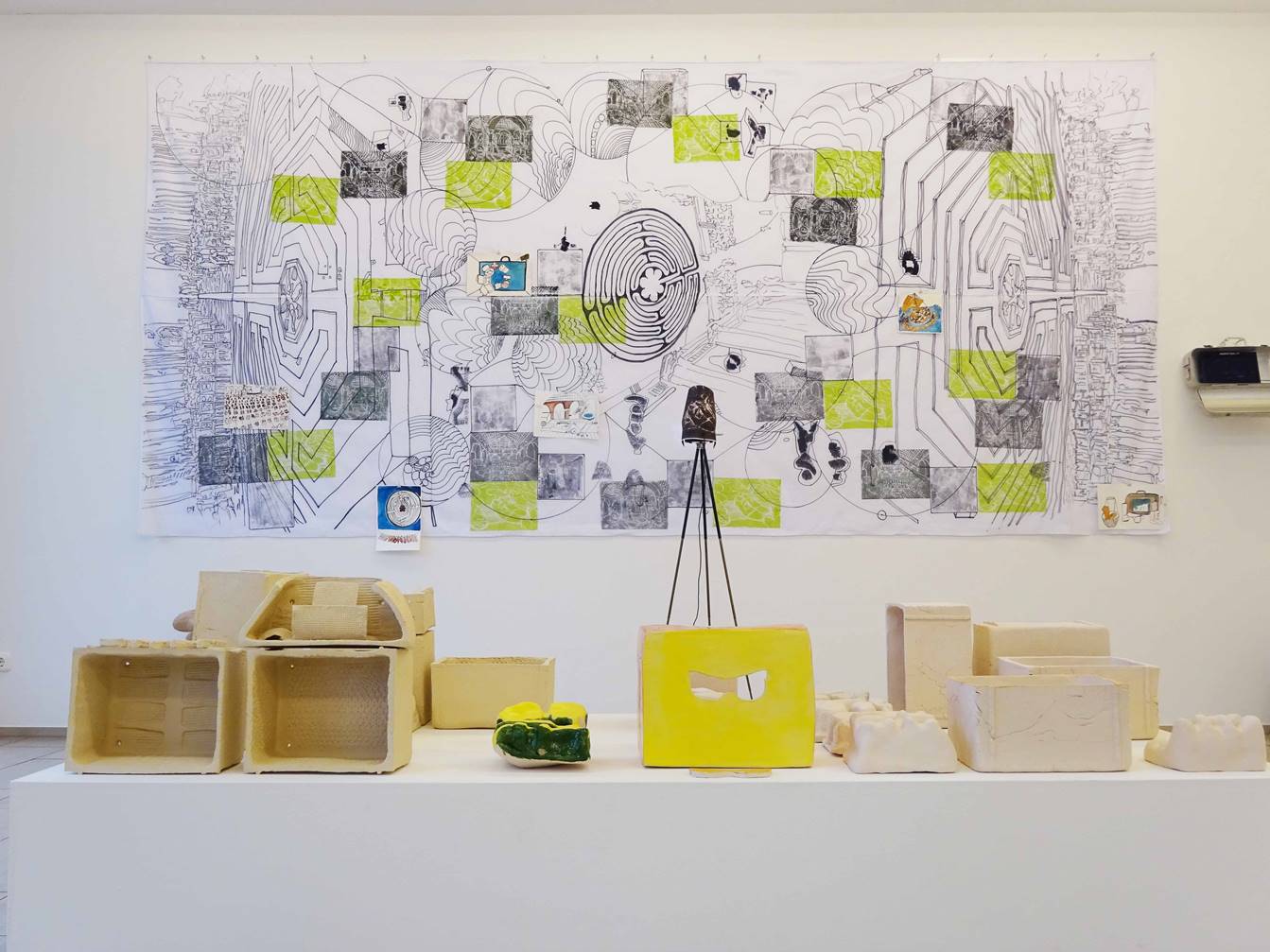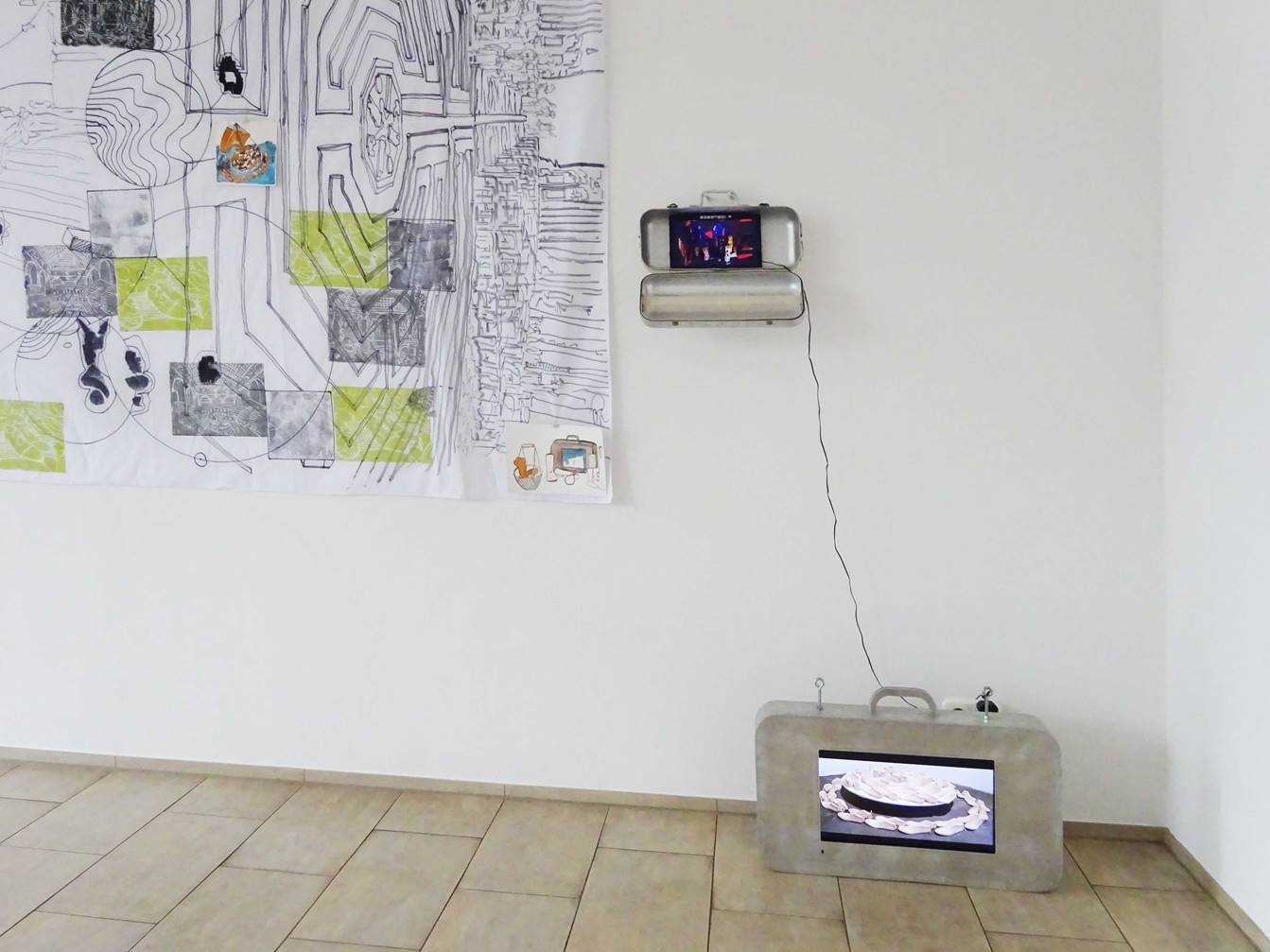 Nele Ströbel –„Medusenfloss –von Nomaden und Medusen“ │7. September –3. November 2018Galerie Pamme-Vogelsang Hahnenstraße 33 50667 Kölnwww.pamme-vogelsang.deNele Ströbel│Pressenotiz Medusenfloss –Von Nomaden und MedusenIn ihrer viertenEinzelausstellung in der Galerie Pamme-Vogelsang wird Nele Ströbeldie Räume in ein >Medusenfloss< verwandeln. Die Bildhauerin lebt und arbeitet in Berlin und München. „Um … die Inspiration der gegensätzlichen Städte … in die Arbeitswirklichkeit des künstlerischen Schaffens einfließen zu lassen braucht es vielerlei Kommunikationsnetze, Planzeichnungenund Behältnisse. Diese treffen in den Räumen der Galerie Pamme-Vogelsang wie auf einem Floß zusammen“, so das Ausstellungskonzept der Künstlerin. Zentrales Exponat derAusstellung ist eine große isometrische Planzeichnung auf Textilmit Dar-stellungen zur Fortbewegung/ Mobilität. Neben klassischen Bodenlabyrinthen sehen wir daz.B. die Schuhe des Papstes, die Franciscus 2015 in Solidaritätmit den Protesten zum Weltklimagipfel nach Paris geschickt hat, wir sehen Ansichten von Innenräumen, Wege, verschiedene Kreissegmente. Die Zeichnung stehtin direkter räumlicherBeziehung zu verschlungenenTerrakottageflechten, Linol-druckenund mit Artefakten gefüllten Miniaturcontainer aus weißer Terrakotta.Das„Nomadentum“ hat für Nele Ströbel viele Dimensionen. Das umfasst auch eine Installation mit Schuhleisten aus einer orthopädischen Werkstatt, die sie wieder zu >gesunden Füssen< zurückgeschnitzt und derenBohrungen sie mit rotem Wachs verschlossen hat. Dazu zeigt Nele Ströbel imMedienkoffer Videos mit Interviews zum „emotional mapping“ und Bilderloops mit denunzähligen an den Stränden der Weltangeschwemmten Schuhen.Nele Ströbel schöpft in ihren Arbeiten immer aus ihrer eigenen Erlebniswelt. Dabei ist der Paradigmenwechsel zwischenprivatemund öffentlichemRaum Kernthema ihrer multimedialen Installationen. Sie weitet denBlick aus dem persönlichenEmpfinden und Erleben des mobilen Daseins in die Vergangenheit unddie gesellschaftspolitische Gegenwartund transformiert ihn in ästhetische Kunstwerke, deren Komplexität neueAssoziationen erlauben und provozieren. Die Kunst von Nele Ströbel fordert auf,Dinge/Sachverhalte/Verwerfungen neu zu denken. In ihren Installationen dekonstruiert sie und bringt einzelne Aspekte ordentlich durcheinander. Sie schenkt demBetrachter Mut, Bekanntesneu zu bedenken und Verwerfungen zu überwinden.Als Bildhauerin interessiert sich Nele Ströbelwenig für Gattungsgrenzen. Sie versteht ihr künstlerisches Schaffen als ein Handeln im Diesseits, in der Welt vor dem Spiegel und vor dem Bildschirm. Ihre künstlerischen „Aggregatzustände“ entstehenund werdenerfahrbar im gegenwärtigen Raum, im Raum des faktisch-politischen Jetzt. Am25. Septemberum 18 Uhrführt Herr Dr. Guido Schlimbach (Kunststation-Sankt Peter Köln) ein Künstlergesprächmit Nele Ströbel. Zum DC OPENist die Galerie am Samstag, 8. Septemberbis 20 Uhr und am Sonntag 9. Septembervon 12 bis 18 Uhr geöffnet.Im hinteren Galerieraum zeigen wir einen aktualisierten Querschnitt durch das Galerieprogramm.Weitere Informationen finden Sie unter www.pamme-vogelsang.de.